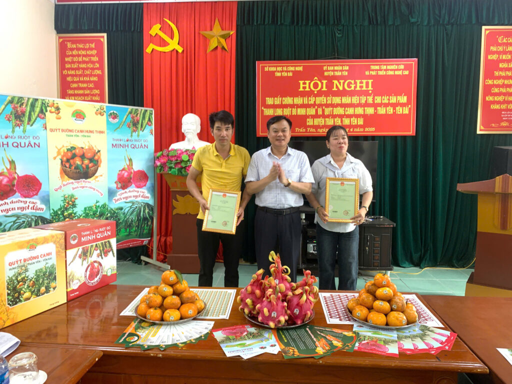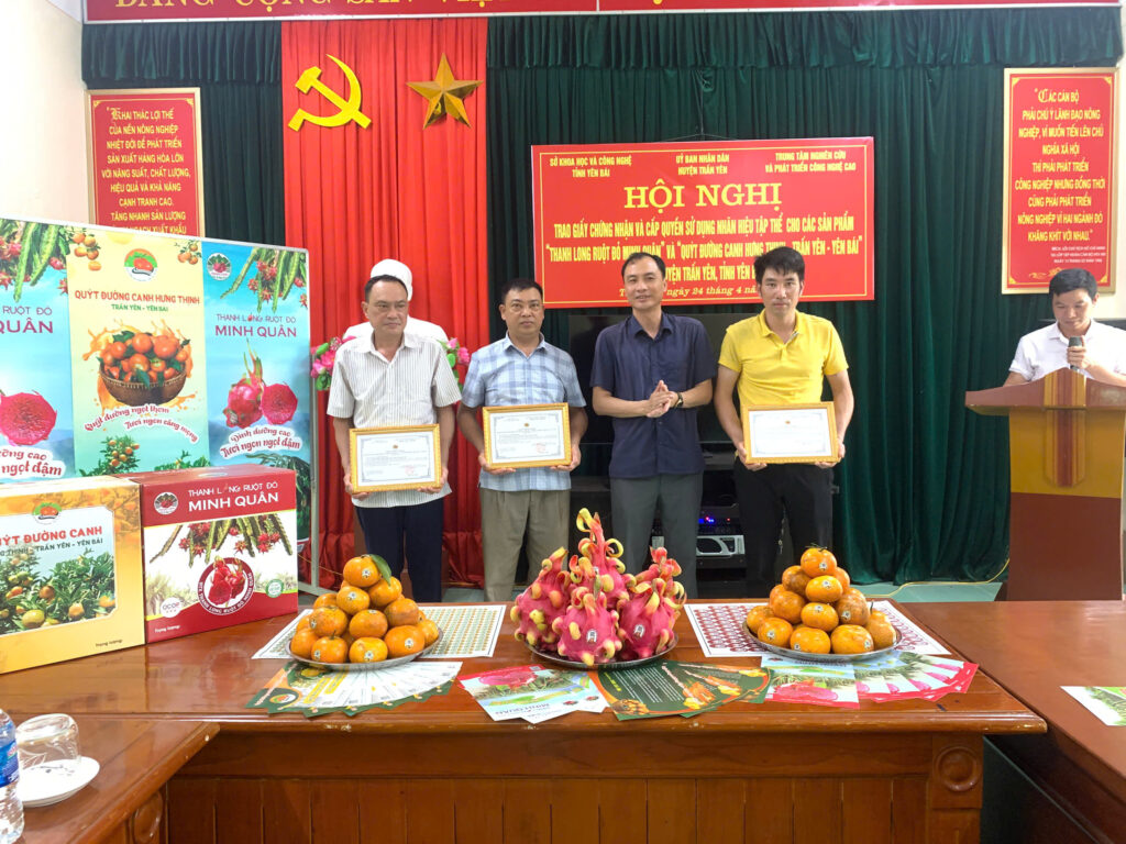 Lãnh đạo Sở Khoa học và Công nghệ tỉnh Yên Bái trao quyền sử dụng Nhãn hiệu tập thể cho sản phẩm “Quýt đường canh Hưng Thịnh – Trấn Yên – Yên Bái”