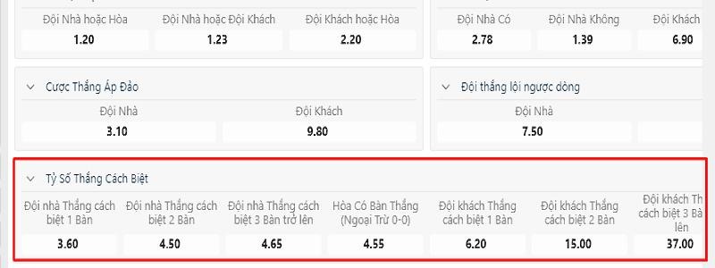 - Tỷ lệ Odds: Mỗi tỷ số sẽ có mức thưởng riêng.